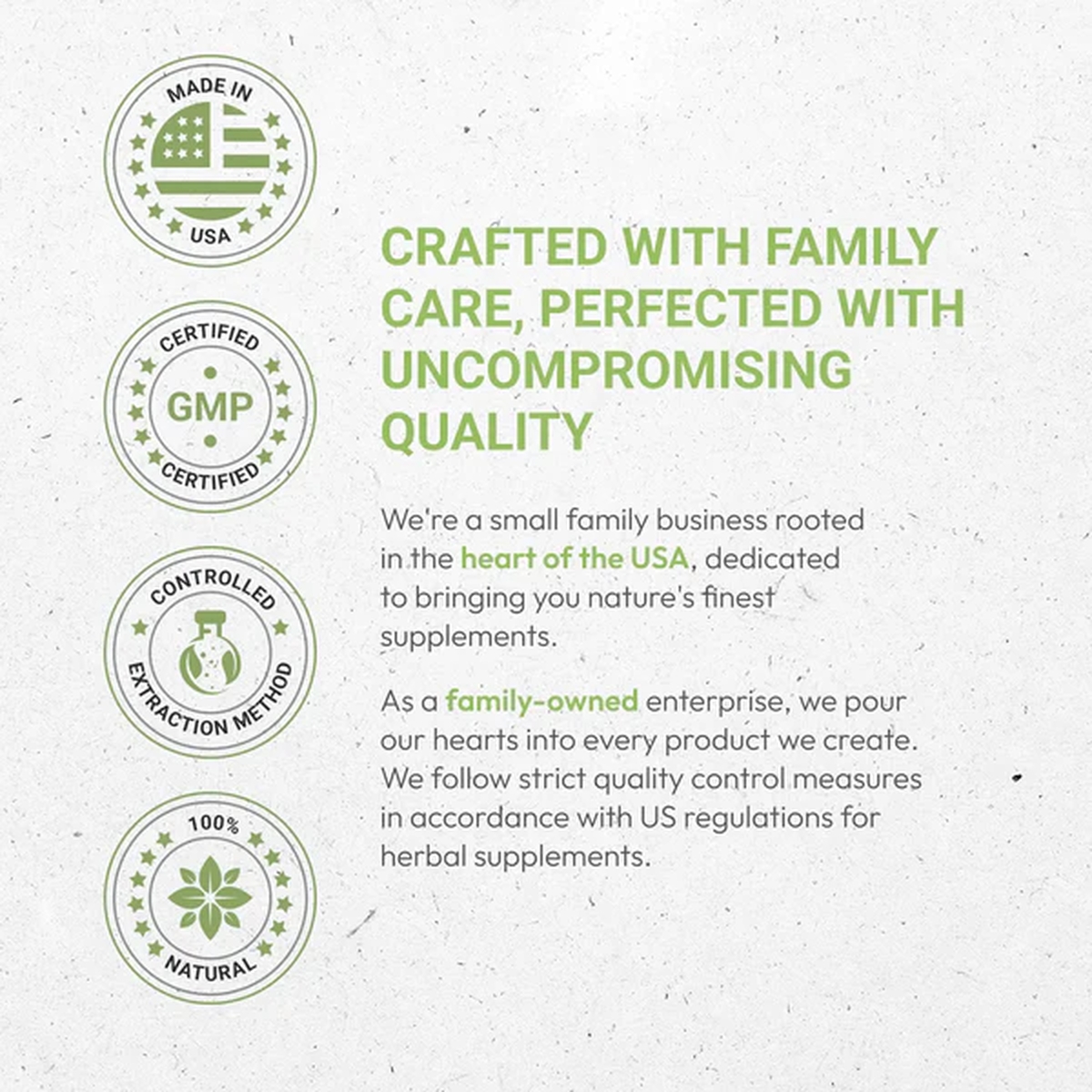 We believe in the power of nature to heal, and our products are a representation of that belief. Our herbal extracts are organic and free of animal products and thus are vegan-friendly, wildcrafted, naturally sourced, not tested on animals, GMO-free, and carefully manufactured and packaged in the USA for you. We believe in natural healing and create products that represent that. Our facility is GMP approved, and our inventory comprises 100% organic or wildcrafted herbal raw materials harvested from natural habitats by trusted growers.